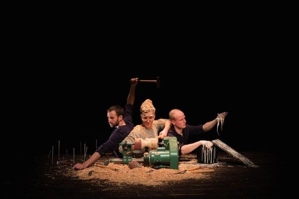 Dialogue ludique et chorégraphié entre le constructeur et son outil, Sawdust Symphony interroge notre désir de création. Explorant tout le processus artisanal, depuis l’idée originelle jusqu’à la construction, trois interprètes partagent l’espace scénique avec leurs outils et leurs machines.