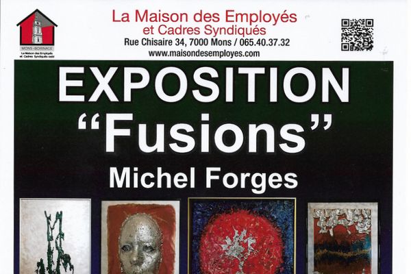 Michel Forges expose ses oeuvres abstraites, métalliques, symboliques. 4 thémes abordés: métalliques (avec des déchets d'aciérie), les arbres de vie (en relief avec des projections d'étain), la féminité ( en relief avec des projections d'étain).