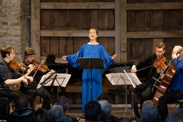 Tout au long de l’année, la grange du Château de Halloy est occupée par des machines agricoles, ou même par des ânes, mais quelques jours avant le début du Festival, elle est transformée (par notre merveilleuse équipe de bénévoles !!) en une salle de concert intime à l’acoustique remarquable, où le public peut se sentir très proche des interprètes. A l’extérieur, dans la cour du Château, une tente est installée, où sont servis repas et boissons; c’est un endroit charmant où les musiciens et le public se rencontrent et discutent.
