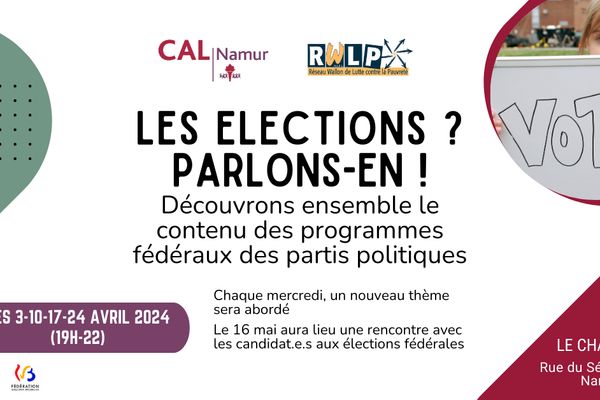 Le Centre d'Action Laïque de la province de Namur en partenariat avec le Réseau Wallon de Lutte contre la Pauvreté vous convie à quatre soirées d'arpentage des programmes fédéraux.
