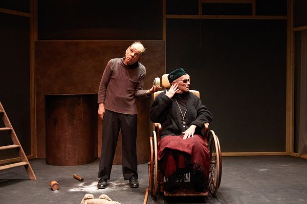Dans cette dystopie de Samuel Beckett, jouée pour la première fois en 1957, la fin du monde n’est jamais certaine, ou plutôt, le monde n’en finit pas de finir. L’espace qui se découvre sous nos yeux pourrait être le purgatoire ou le dernier abri d’un monde détruit, dont les fenêtres qu’on atteint par un escabeau, donnent l’une sur la mer grise, l’autre sur une terre vide.