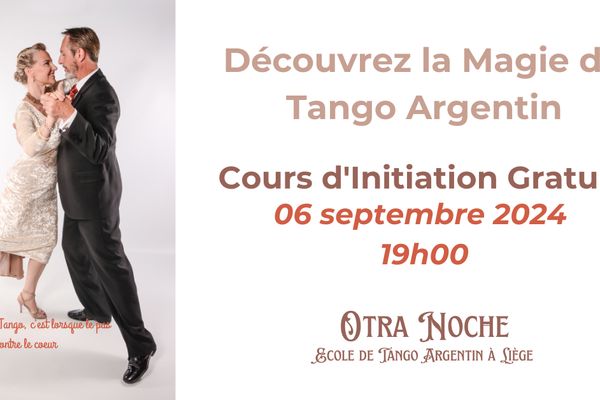 Nous vous invitons à un cours d'initiation gratuit pour vous immerger dans l'univers du tango, même si vous n'avez aucune expérience en danse ou en tango argentin. C'est l'occasion parfaite pour faire vos premiers pas sur la piste !