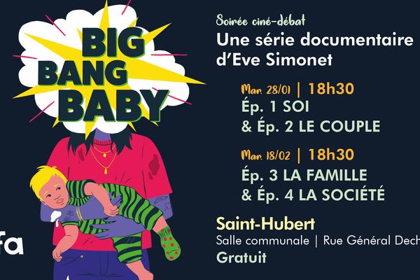 En janvier et février, différents partenaires s’associent pour vous proposer la projection de ✨ Big Bang Baby ✨ (Eve Simonet, 2023), le documentaire qui met la parentalité au cœur du débat !
