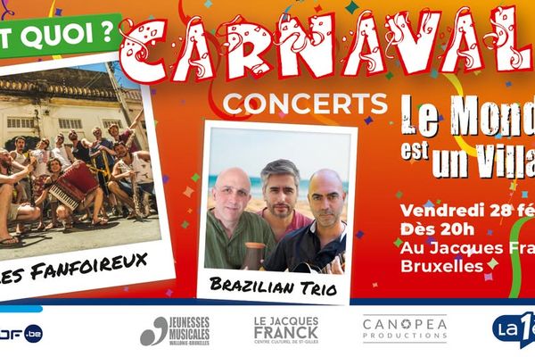 Un esprit festif, une expérience musicale, une connivence collective seront généreusement distillés avec le Carnaval comme idéal et indispensable compagnon de soirée. Première destination brésilienne dès 20 heures avec le Brazilian Trio, la deuxième destination permettra de battre le pavé à votre façon ou de bouger en osmose avec Les Fanfoireux.