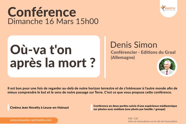 Conférence : Où va-t-on après la mort ? Denis Simon (éditions du Graal Allemagne)