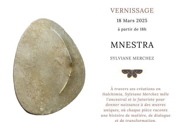 Sylviane Merchez, connue sous le nom de Mnestra, est une artiste dont le travail établit un dialogue intime avec la nature, grâce à l'utilisation de géopolymères, un matériau à la fois fascinant et rare. Ses créations se caractérisent par une grande variété d'effets, allant des craquelures naturelles du matériau à l'éclat profond des métaux qu'elle incorpore avec subtilité.