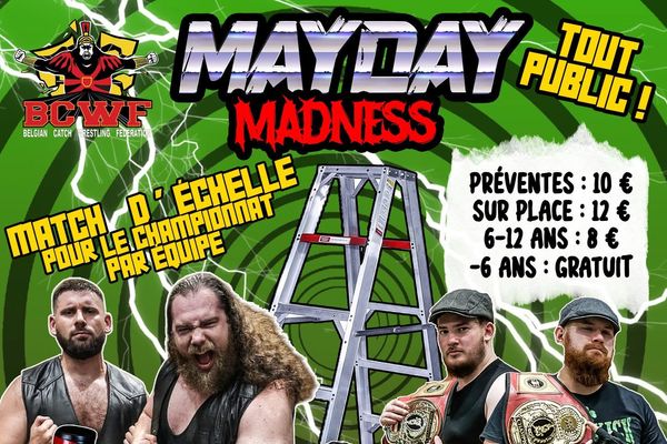 Le 2 mai, venez assister à un événement de catch spectaculaire ! Avec un MATCH D'ÉCHELLE par équipe, le titre poids lourd sera défendu, des stars internationaux ainsi que belges, et beaucoup plus ! Portes: 19h Show: 20h Prix: - Prévente : €10 - Sur place: €12 - Enfants 6-12 ans: €8 - Enfants -6 ans: gratuit ! Pour commander vos préventes, contactez-nous sur Facebook, Instagram ou par tel. 0497/85.99.20 !