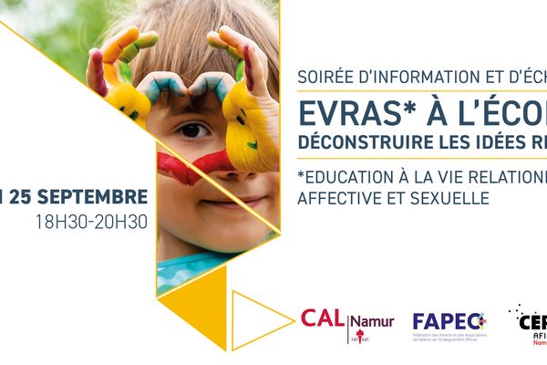 C’est pourquoi, la FAPEO, Afico et le CAL de la province de Namur proposent une rencontre pour mieux comprendre ce qu’est l’EVRAS* et l’intérêt qu’il y a d’en parler à l’école.