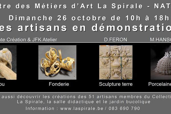Le Centre des Métiers d’Art « La Spirale » présente, de manière permanente, le travail d’une cinquantaine d’artistes et d’artisans issus de toute la Wallonie.