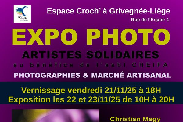 Exposition-vente à des fins caritatives d'oeuvres réalisées par des photographes de la région liégeoise.