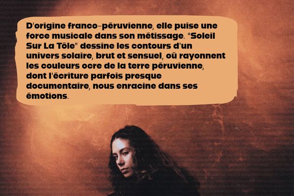 D’origine franco-péruvienne, elle puise une force musicale dans son métissage. “Soleil Sur La Tôle” dessine les contours d’un univers solaire, brut et sensuel, où rayonnent les couleurs ocre de la terre péruvienne, dont l’écriture parfois presque documentaire, nous enracine dans ses émotions. À travers son flow nonchalant, ANJEES G.G explore autant sa construction intime que sa réalité culturelle hybride, offrant un rap incarné, empreint de sincérité et de relief.