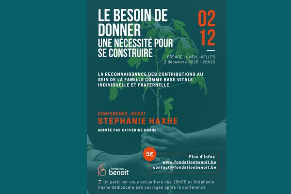 La Fondation Benoit vous invite à une soirée unique avec Stéphanie Haxhe, docteure en psychologie clinique, thérapeute familiale contextuelle, formatrice et auteure des ouvrages L’enfant parentifié et sa famille et Frères et sœurs, des liens à soigner.
