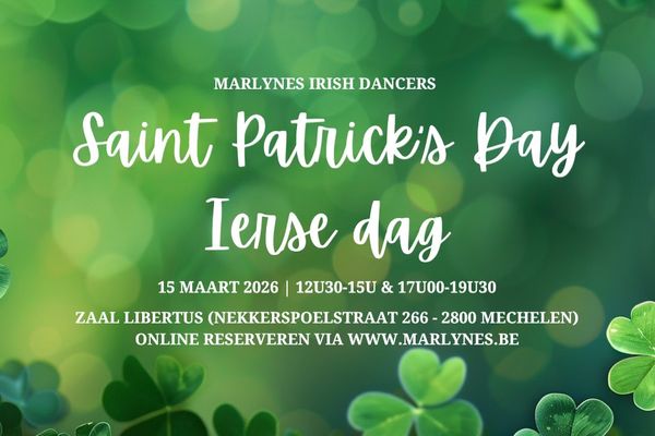 Op zondag 15 maart 2026 organiseren we een Ierse dag met eten en optredens. De avond gaat door in Zaal Libertus - Nekkerspoelstraat 366, 2800 Mechelen