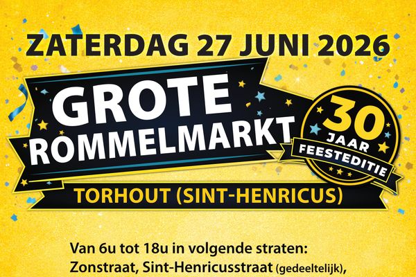 Kom gezellig snuisteren op de rommelmarkt in Sint-Henricus (Torhout) op zaterdag 27 juni 2026, van 6u tot 18u.